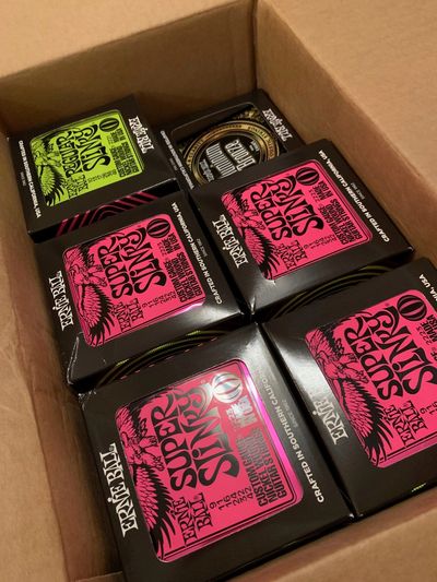 Tim is gearing up for a new record expected to start later this Summer. Heres a photo of fresh strings straight from our friends at Ernie Ball!